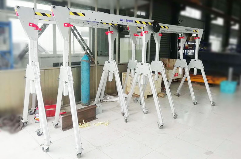 铝合金门吊采用更轻便的高强度铝合金型材优化设计,结构新颖、自重轻、便于携带、质量可靠、操作简单。 是一种经济高效的物料输送解决方案。